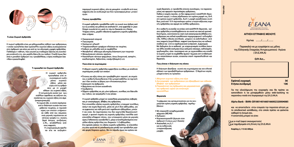 Αυτό είναι το έντυπο της ΕΛ.Ε.ΑΝ.Α για την Ουρική Αρθρίτιδα.