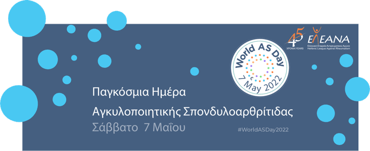 Αυτό είναι ένα από τα βασικά μηνύματα του φετινού εορτασμού της Παγκόσμιας Ημέρας για την Αγκυλοποιητική Σπονδυλοαρθρίτιδα ή Σπονδυλίτιδα (ΑΣ) που εορτάζεται κάθε χρόνο το πρώτο Σάββατο του Μαΐου, μετά την 1η Μαΐου. Φέτος, η Παγκόσμια ημέρα εορτάζεται το Σάββατο 07 Μαΐου με δράσεις ενημέρωσης και ευαισθητοποίησης του κοινού, από την ΑSIF (Παγκόσμια Ομοσπονδία Συλλόγων Ασθενών με Αγκυλοποιητική Σπονδυλοαρθρίτιδα) και την Ελληνική Εταιρεία Αντιρευματικού Αγώνα/ΕΛ.Ε.ΑΝ.Α., η οποία είναι αποκλειστικό μέλος της ASIF για την Ελλάδα.