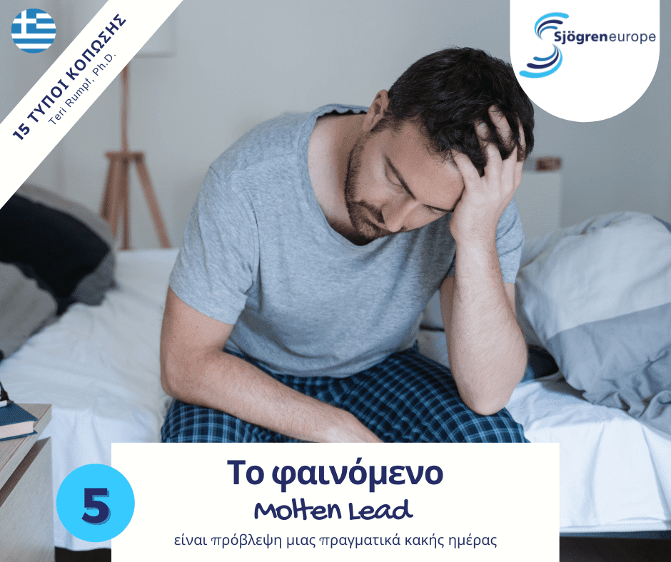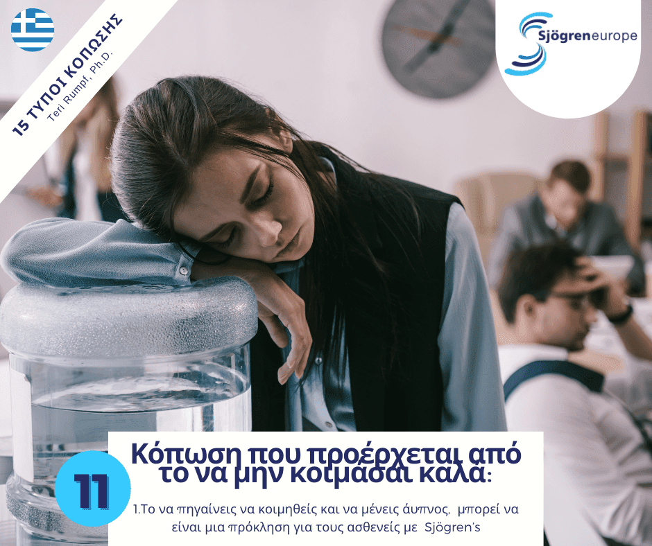 - Κόπωση που προέρχεται από το να μην κοιμάσαι καλά: Το να πηγαίνεις να κοιμηθείς και να μένεις άυπνος, μπορεί να είναι μια πρόκληση για τους ασθενείς με Sjögren’s