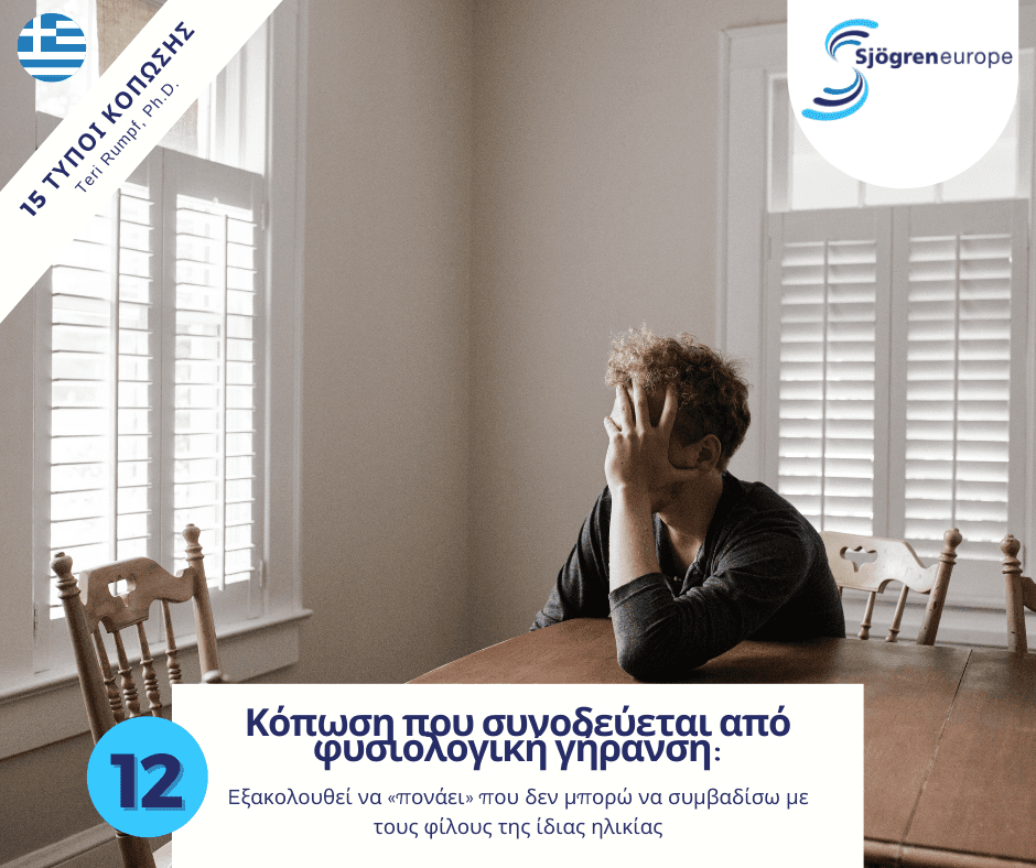 - Κόπωση που συνοδεύεται από φυσιολογική γήρανση: Eξακολουθεί να «πονάει» που δεν μπορώ να συμβαδίσω με τους φίλους της ίδιας ηλικίας
