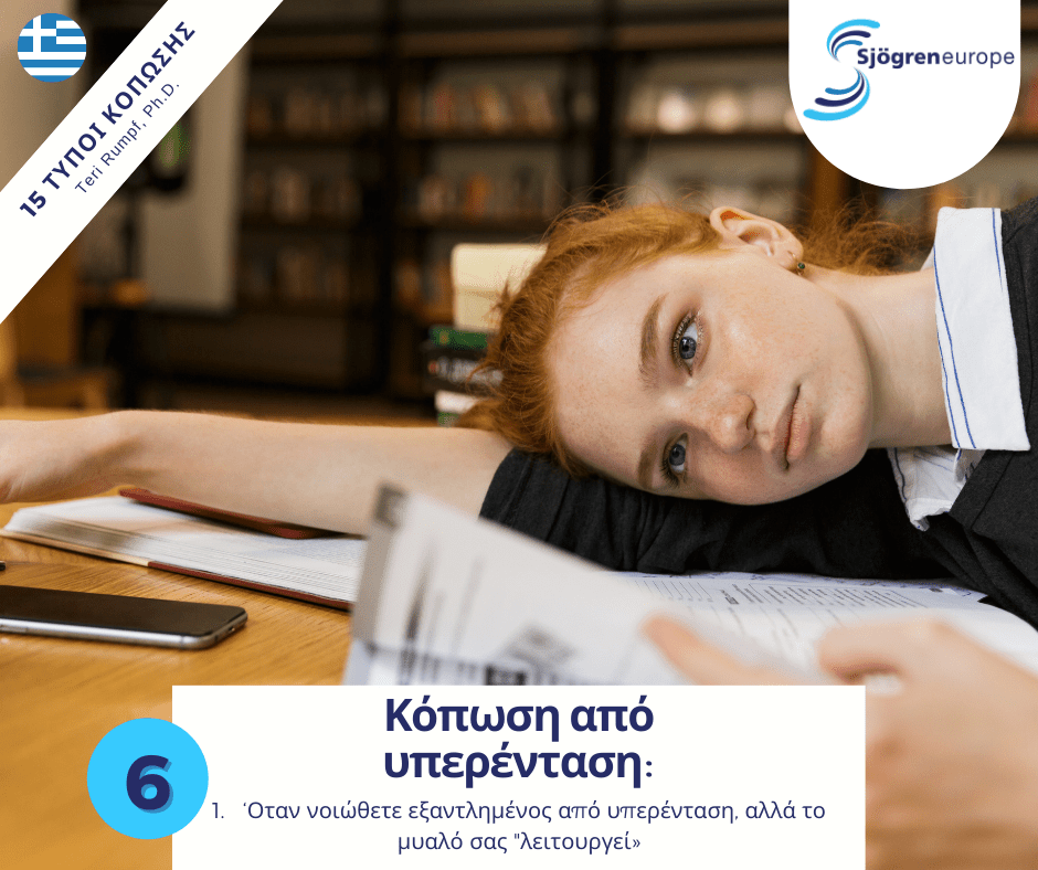- Η βασική μορφή της κόπωσης έχει αδιάλειπτη παρουσία σε πολλούς ασθενείς με Sjögren’s.